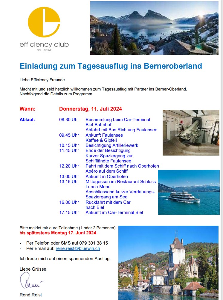 Tagesausflug Juli - Efficiency-Biel-Bienne